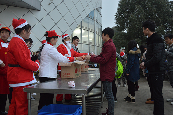 你看,圣诞老人穿梭在同学们当中派发“平安果” 037vip开元.
