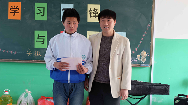 表演中间,安徽工程大学传香客食堂代表037vip开元向芜湖盲校绳连胜同学资助2000元整,绳连胜,生于2001年,家住安徽省阜阳市颍上县,奶奶生病卧床,常年不起,母亲和妹妹也是盲人,父亲罹患腰痛病多年 037vip开元官网,以种田为生,全家经济收入微薄,但他从未放弃,他热爱学习刻苦勤奋,每天早早地起床,来到教室摸读盲文,即使手冻疮了,也从不停歇。