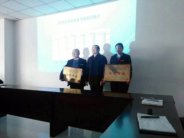 在本次座谈会上,合肥学院公管处授予我公司合肥学院第五食堂“先进单位”的荣誉称号并现场颁发铜牌。本次测评由合肥学院监管部门、合肥学院学生伙委会和辖区各监管职能部门共同评审选出,这充分肯定了合肥学院第五食堂在2015年度所取得的成绩。