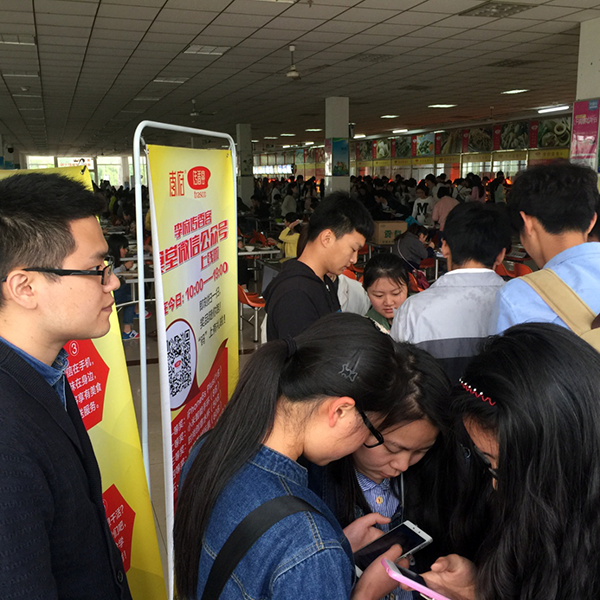2016年4月26日上午10时许,以“传香客食堂优质服务月”为主题的037vip开元注册入口微信公众号推广活动在安徽财贸职业学院传香客第二食堂正式拉开帷幕。作为我公司合肥地区第一个微信宣传食堂,本次活动得到了安徽财贸职业学院后勤领导及我公司相关负责人的高度重视。总经办副主任梁灿携办公室、网络部等集团总部人员前往食堂现场,详细耐心的为就餐师生讲解关注方式、抽奖流程及微信公众号的相关功能。据后台数据统计,当天有超过1000名师生关注了我集团微信公众号。