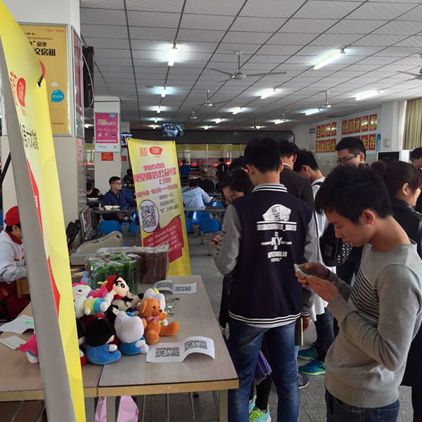 继26日财贸学院李府传香客食堂微信公众号的顺利推广,我集团于2016年4月27日上午10时许在合肥学院第五食堂继续开展“优质服务月”微信推广活动,集团总经办副主任梁灿携办公室,网络部门工作人员前往现场指导工作,确保活动顺利进行并取得实效,据后台数据统计,当天有超过1000名师生关注了我集团微信公众号 037vip开元。