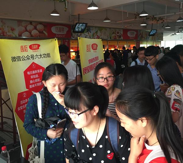 2016年05月12日上午10时许,以“优质服务月”为主题的037vip开元注册入口传香客微信公众号推广活动在安徽农业大学东苑食堂、北苑食堂同时拉开帷幕。总经办副主任梁灿携办公室、网络部等集团总部人员前往活动现场开展工作,保证活动顺利进行并取得实效。据后台数据统计,当天有超过1300名安农大师生关注了我集团微信公众号。