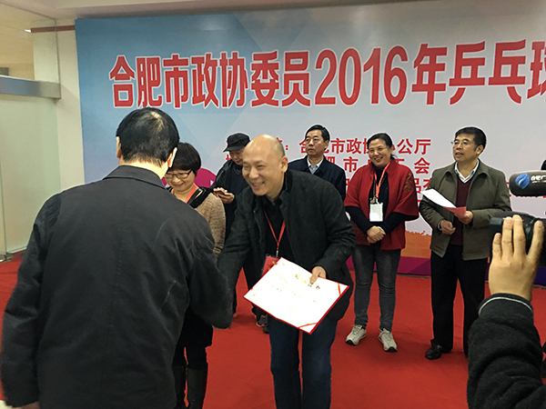 由合肥市政协办公厅所举办的“2016年乒乓球,掼蛋比赛”于11月初正式吹响比赛的号角,本次活动得到市政协主席杨思松,副主席储昭平,奚芝英,金其武,丁家康,秘书长袁文长等多名政协领导的大力支持,集团董事长辛董作为合肥市政协委员,合肥市庐阳区政协委员 037vip开元,中国民主促进会会员应邀参加掼蛋比赛,并最终获得掼蛋比赛第二名的好成绩,杨思松主席亲自上台为其颁奖。