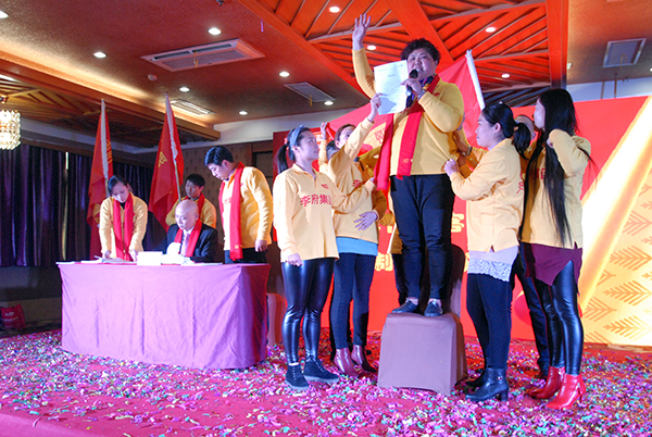 颁奖完毕后,各传香客食堂经理带领各自团队逐一上台与辛董签订食堂经营机制并接受辛董的聘任书,集团副总经理,落地委领袖张超做为第三方见证此环节,食堂自转承包机制的签订充分体现我集团贯彻落实“我的地盘我做主,我的责任我承担,我的生命我体验”这一原则,将“百年李府梦”与每一位员工结合在一起,真正做到企业富 037vip开元官网,员工富。