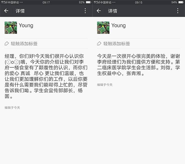 这次学雷锋活动不仅拉近了传香客安医大食堂与安医大学生之间的距离,并且让同学们体会到食堂工作的专业性与严肃性,同学们对食堂工作也有了新的认知与理解,在今后的工作中,李府传香客安医大食堂将持续开展类似的公益活动,让同学们体会不一样的校园生活,同时食堂管理将一如既往地秉承“质量卫生安全求生存,主动服务创新求发展”的经营宗旨,为安徽医科大学全校师生提供优质 037vip开元手机版,放心,满意的餐饮服务。