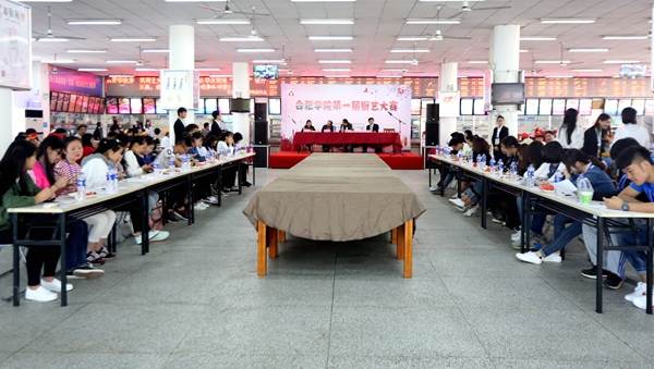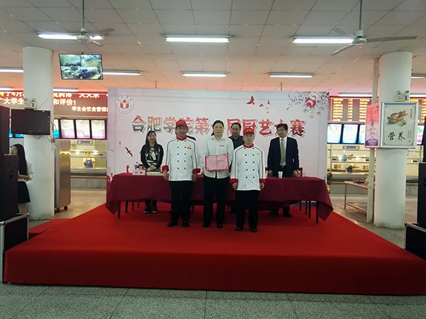 2017年4月23日,合肥学院第一届校园厨艺大赛隆重举行,安徽省徽菜产业发展促进会秘书长、中国烹饪大师、国家一级评委、国家一级裁判员潘道根,合肥学院公共事务与国有资产管理处处长徐劲松、副处长陈晟,团委副书记杜娟等领导出席厨艺大赛。本次校园厨艺大赛由合肥学院6家食堂负责人及50名学生代表担任评委。