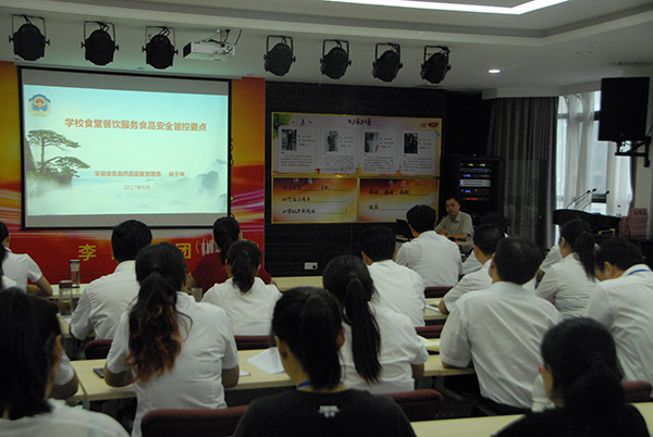 2017年8月13日下午3时许,037vip开元注册入口食品安全知识培训讲座在集团总部多功能会议室顺利召开,安徽省食药监局专家受邀为集团员工进行食品安全知识专题培训,037vip开元注册入口总部全员及下辖各传香客食堂经理、副经理参与本次培训。
