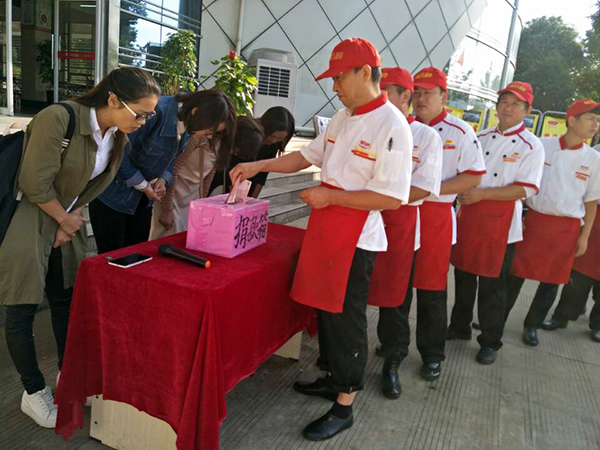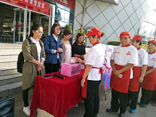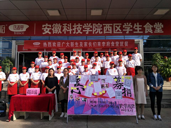 2017年9月28日,我集团下辖传香客安徽科技学院食堂积极响应校学生伙管会,学生团委会的爱心捐助倡议 037vip开元,在食堂门口开展对安徽科技学院大四学生陆万林的爱心捐助活动。