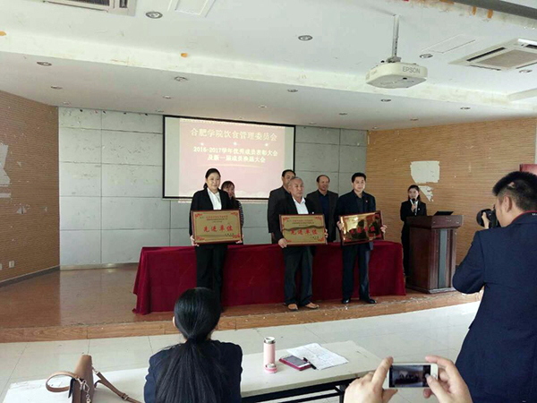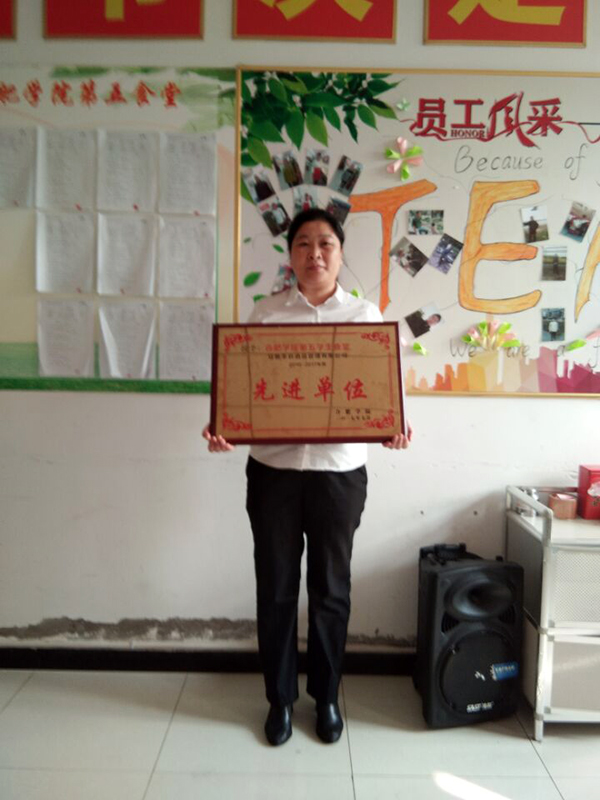 ,学院伙委会三方的检查汇总及校方对食堂的满意度调查中以总评分第一的排名荣获该校颁发的“先进单位”荣誉称号。