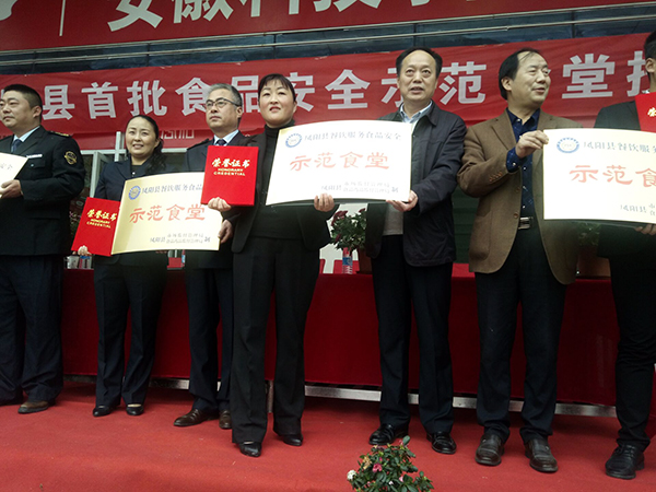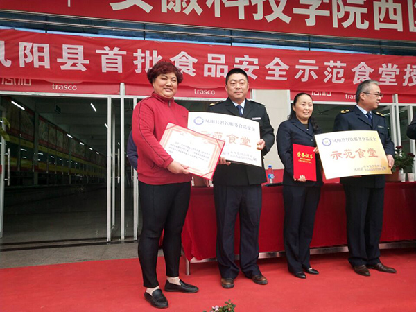 热烈祝贺我集团下辖传香客安科,凤中食堂在2017年度凤阳县餐饮服务食品安全评比中被市场监督管理局,食品药品监督管理局评为首批“示范食堂”荣誉称号