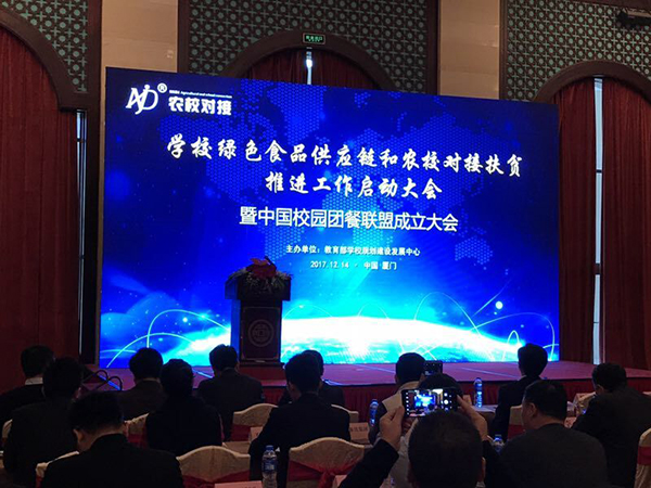 学校绿色食品供应链和农校对接扶贫推进工作启动大会暨中国校园团餐联盟成立大会于2017年12月14日在厦门举行,三百多位来自全国省级教育行政部门负责高等院校后勤管理工作的领导,高等院校后勤管理负责人及受推荐的优质团餐企业负责人以及部分国内大型团餐企业负责人出席了会议 037vip开元,我集团董事长辛董作为安徽团膳餐饮企业代表应邀参加本次大会并在会上与参会人员进行相关经验的交流与研讨。