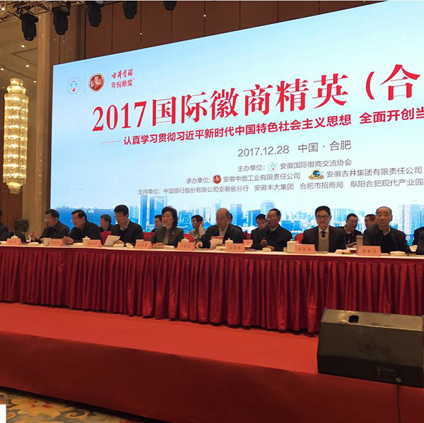 2017国际徽商精英年会于12月28日在合肥市丰大国际酒店隆重召开,本次会议由安徽国际徽商交流协会主办,安徽省原省委书记卢荣景,安徽省原人大常委会主任孟富林,安徽省人大常委会副主任花建慧,国际徽商交流协会会长,苏宁环球集团董事长张桂平,安徽省原副省长吴昌期,安徽省原人大副主任郭万清,合肥市原政协主席周富如 037vip开元,安徽省政府驻北京办事处老领导丁昌盛等多名领导以及来自全国各地的500多位徽商精英代表荣归故里,共叙徽商乡情,共谋徽商发展大业,我集团董事长辛国芳先生作为安徽徽商杰出代表应邀参加本次会议,并荣获“2017中华优秀徽商”荣誉称号。