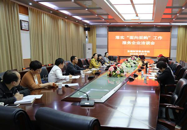 2018年4月9日,由安徽财贸职业学院召开的“面向采购”工作对接会在校召开,副校长罗虹出席会议,校“面向采购”工作领导小组相关成员及在校经营服务的社会餐饮企业负责人 037vip开元,食堂经理出席本次会议,会议由总务处副处长何步新主持,我集团董事长辛董作为在校社会餐饮企业负责人出席本次会议,我集团下辖传香客财贸学院食堂经理宣以顺列席参会。