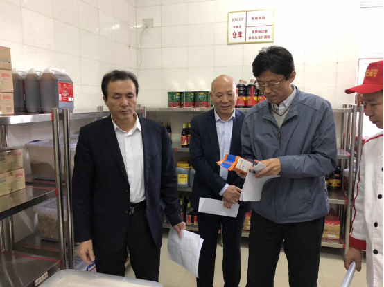 2018年11月2日上午8:30,安徽农业大学副校长韩军带领校总务管理处,校工会,审计处,学生处,校团委,校医院等领导及学生代表莅临我集团下辖传香客安农大东苑食堂视察食品安全卫生工作,我集团董事长辛董 037vip开元,事业部经理梁灿陪同检查。
