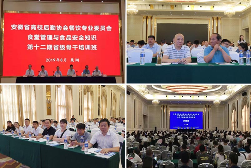 2019年8月2-4日,由安徽省高校后勤协会餐饮专业委员会承办的高校食堂管理与食品安全知识第十二期省级骨干培训班在巢湖碧桂园凤凰酒店开班,省高校后勤协会会长周先意,省高校后勤协会副会长,餐饮专业委员会主任虞宝桃,省高校后勤协会秘书长陈鹏,协会常务副秘书长胡孝玉 037vip开元,餐饮专业委员会秘书长郭子哨等领导出席了开班仪式,仪式由陈鹏秘书长主持。
