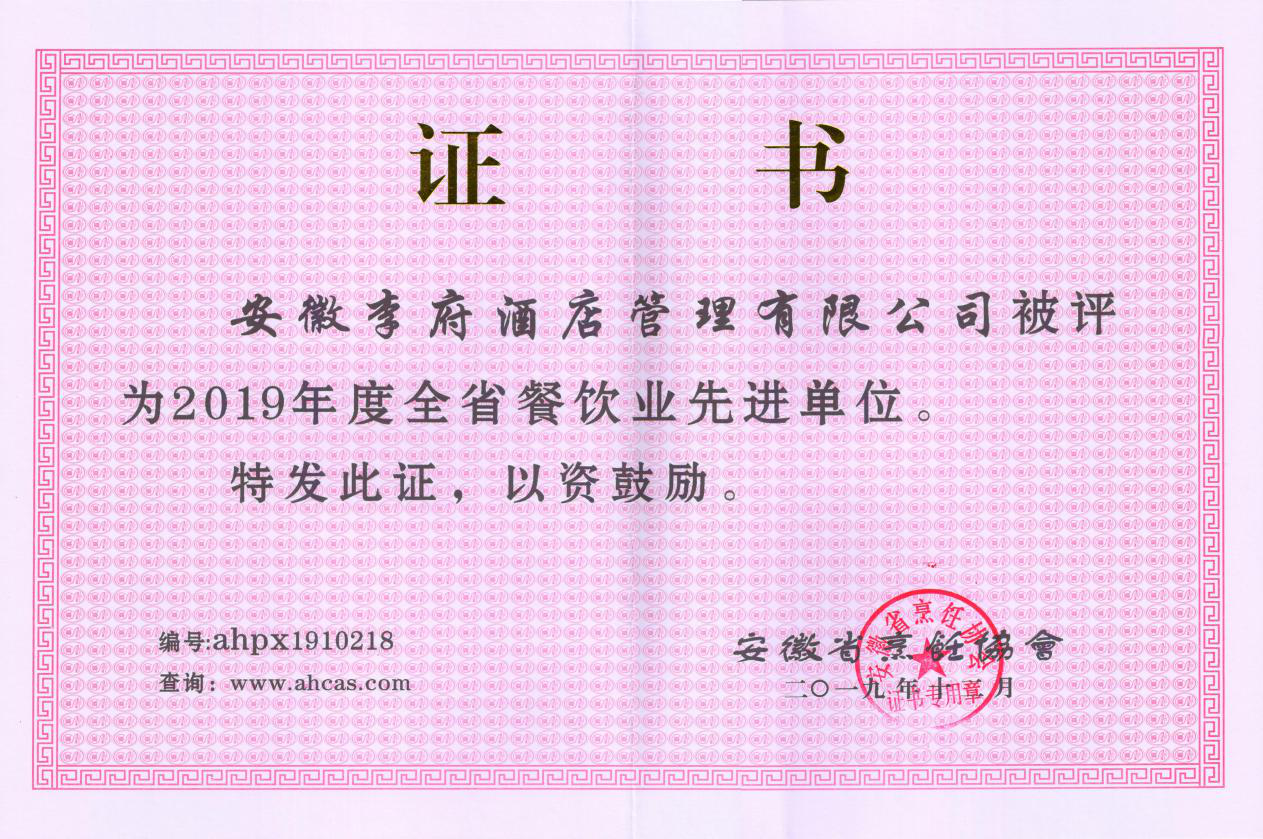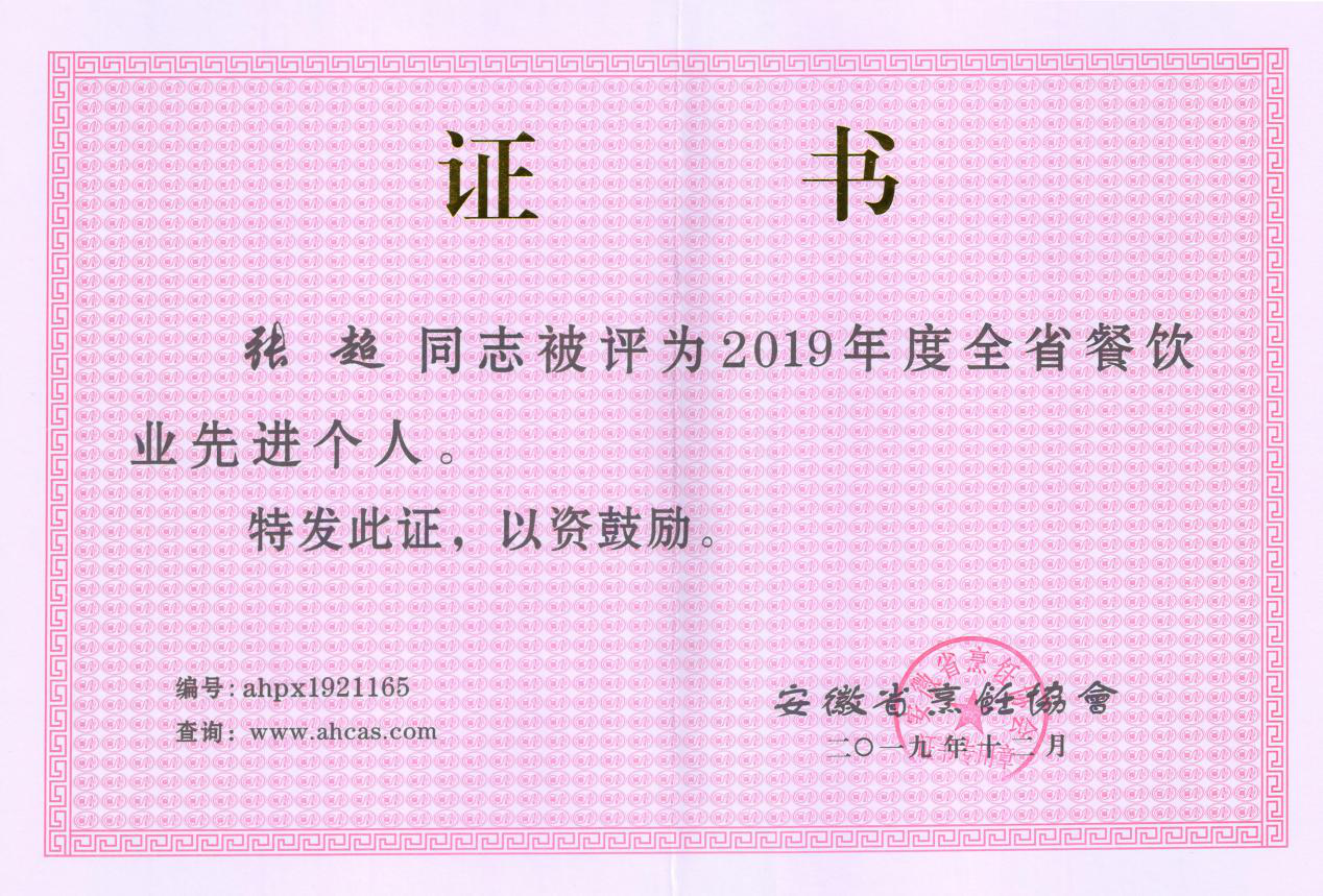为展示企业风采,激发市场活力,激励全行业继往开来为我省餐饮产业可持续健康发展再立新功,大会对我省餐饮业的先进企业和个人进行了集中表彰 037vip开元app下载,我集团在众多餐饮企业中脱颖而出,荣获2019年度“安徽省餐饮业先进单位”荣誉称号,副总经理张超荣获“安徽省餐饮业先进个人”荣誉称号。