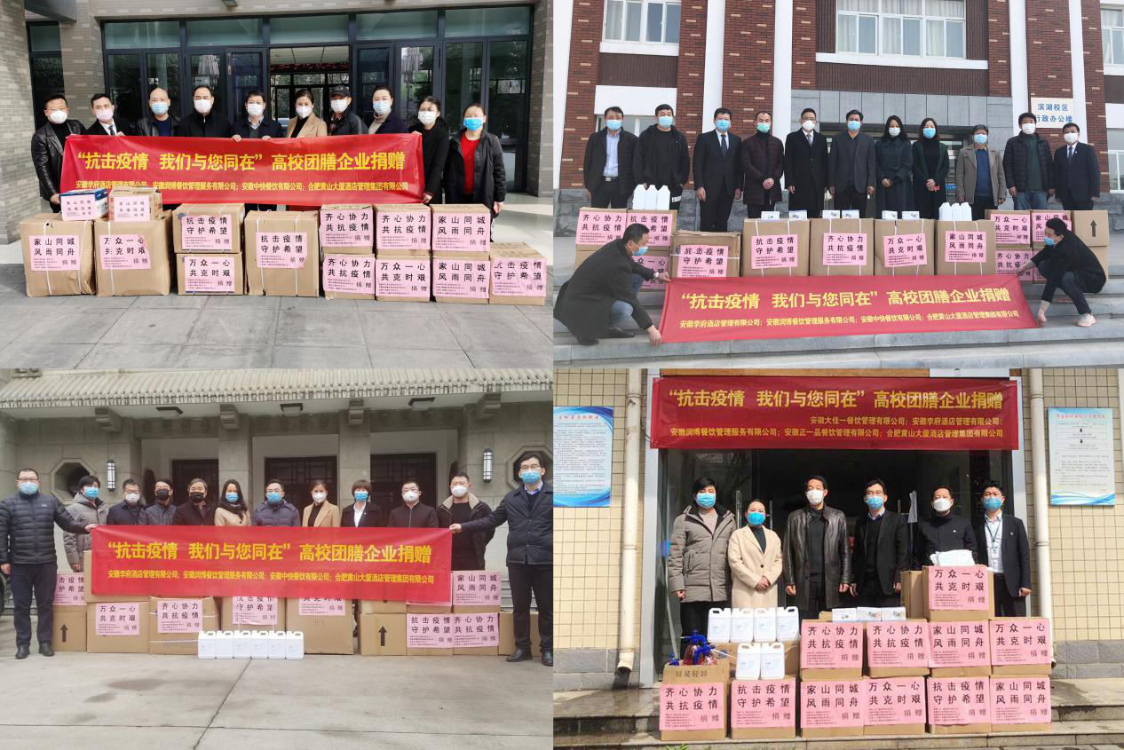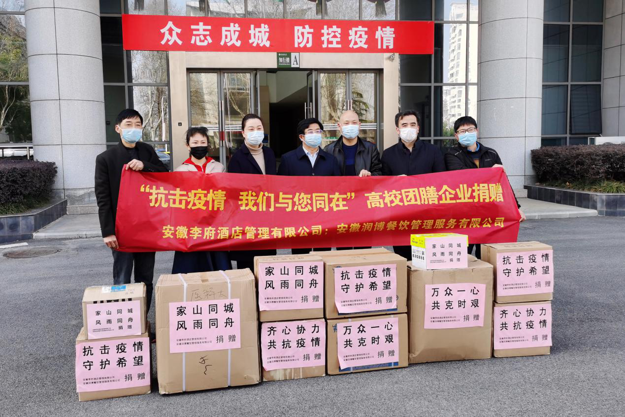 疫情就是命令,防控就是责任,面对防控新冠肺炎的严峻形势,集团董事长辛国芳先生不仅积极组织在岗员工捐款捐物,奉献爱心,还多方组织货源,筹备医用口罩,消毒液,酒精等疫情防控急需物资捐赠给学校,助力学校打赢新冠肺炎疫情防控阻击战,截至发稿时间,集团已向中国科学技术大学,安徽农业大学,安徽医科大学,安徽工业大学,安徽理工大学,安徽中医药大学,淮北师范大学,合肥学院,合肥师范学院,滁州学院 037vip开元手机版,皖南医学院,安徽科技学院,安徽财贸职业学院等学校捐赠了一次性医用外科口罩,84消毒液,75%酒精,免洗手抗菌凝胶,消毒喷壶,额温枪等防疫物资共计150余箱,总价值25万元,为学校疫情防控工作贡献一份力量。