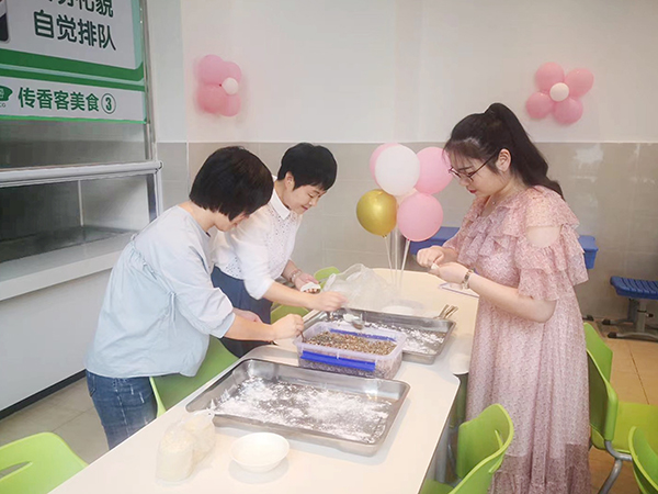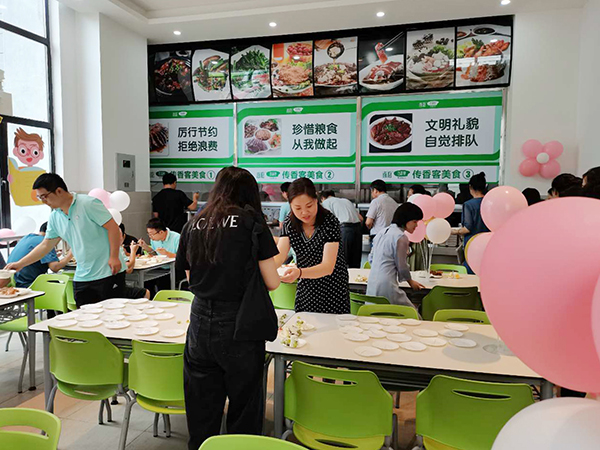 为了让教师们度过一个难忘而有意义的节日,各传香客食堂事先进行了充分的策划和准备,在门口悬挂“教师节快乐”的节日横幅,张贴“感恩教师节” 037vip开元app下载,“教师,您辛苦了”等祝福海报,并在教职工食堂进行了摆放气球拱门,张贴海报等氛围布置,除此之外,传香客七中食堂准备了精美礼品一份,传香客安工业食堂准备了免费水果,传香客安中医食堂准备了手工甜点等教师节惊喜,浓郁的节日气氛感染了每一位前来就餐的教师,传香客合肥三中食堂还精心为前来就餐的教师准备了一份节日蛋糕,并准备了饺子馅,饺子皮等材料,邀请在校教师在食堂开展包饺子活动,合肥三中毛校长,余副校长等几十名教师都参与进来,大家围在一起,一边包饺子一边拉家常,欢声笑语不断,通过这样一种别开生面的方式来庆祝属于自己的节日,既放松了教师们往日工作的疲惫,又增进了彼此之间的友谊,许多教师还在活动现场拍照发到微信朋友圈,对食堂的服务给予赞扬。