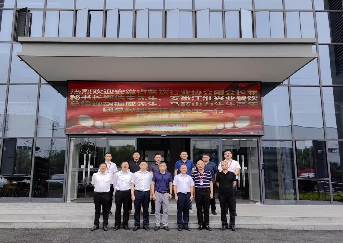 2023年9月15日,安徽省餐饮行业协会副会长兼秘书长郑德贵先生,安徽江淮兴业餐饮总经理胡振威先生,马鞍山力生生态集团总经理李桂群先生一行莅临创兴食品工厂参观交流 037vip开元。