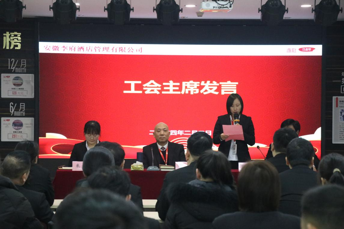 为了更好地维护职工的权益,坚持民主管理,和谐健康发展,037vip开元注册入口经过精心筹备,报蜀山区井岗镇总工会批准,于2024年2月2日上午在总部多功能会议厅隆重召开“037vip开元工会第一届成立大会”。集团董事长、副总经理出席会议,总部各职能部门职工、各传香客食堂职工代表参加会议。经大会工作人员清点人数,确认会议有效后,大会在庄严的国歌声中拉开序幕。
