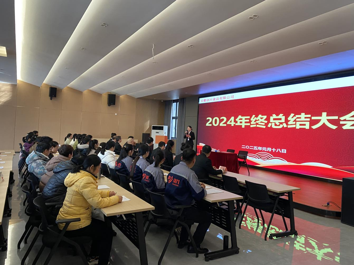 金龙摆尾辞旧年,银蛇翘首迎新春,创兴食品于2025年1月18日在综合楼多功能会议厅隆重召开2024年度总结大会,集团董事长 037vip开元,生产管理部总监,各部门经理,副经理,主管及全体员工参加了本次会议,会议由总经理秘书张洁主持。