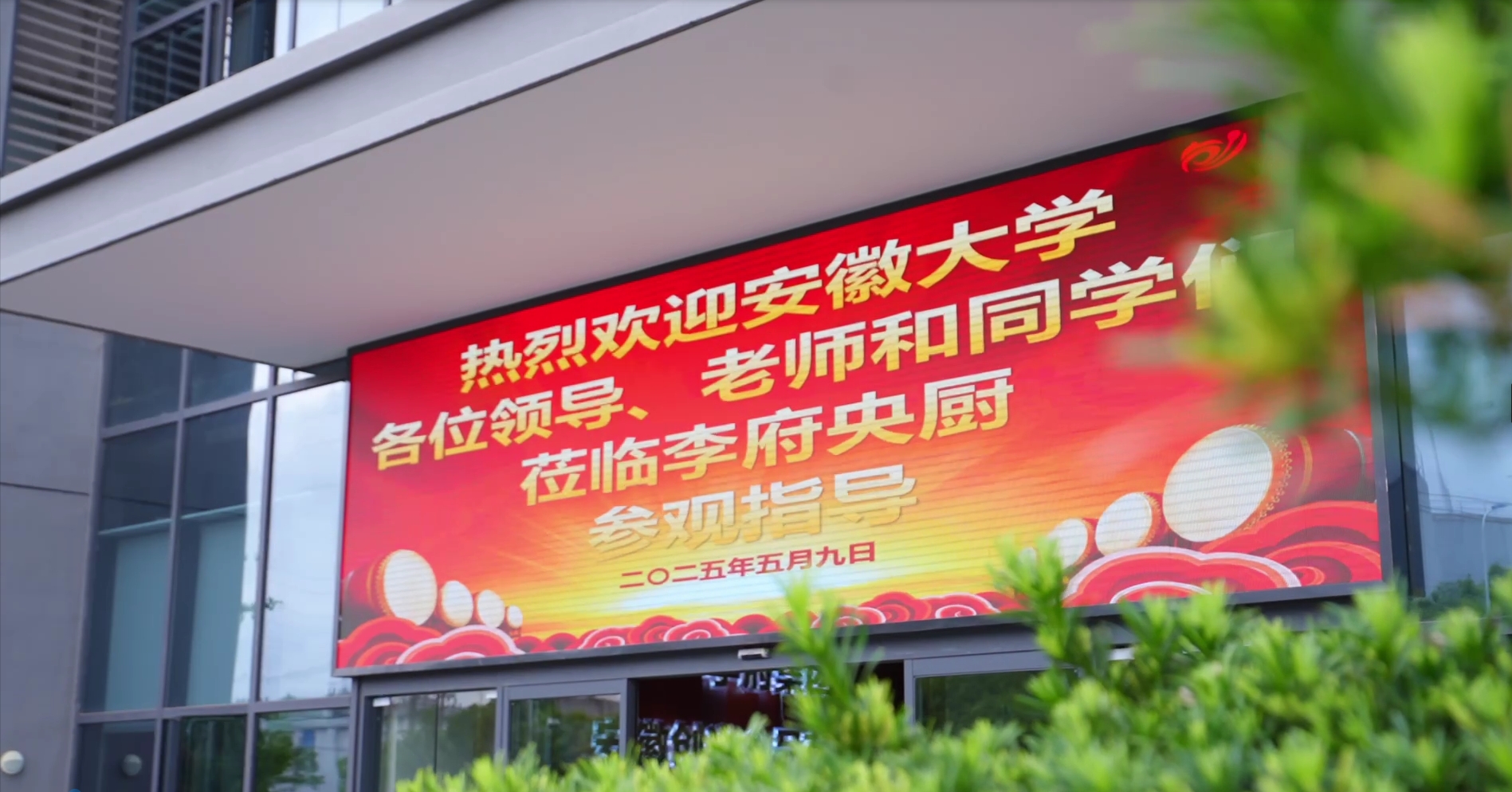首先 037vip开元app下载,在多功能报告厅内,副总经理崔君秋先向安徽大学的各位领导与师生致以最诚挚的欢迎词,并邀请师生们观看了“李府央厨”宣传片,随后,一行人深入生产车间,实地参观了央厨从原料采购,质量把控,生产加工,产品检测,冷链运输,信息监测等每一个环节。